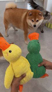 🦆 Deixe seu pet mais feliz com o brinquedo de pelúcia em formato de pato, perfeito para estimular a brincadeira, reduzir o estresse e manter seu cachorro entretido por muito mais tempo. Macio, resistente e com som interno, é ideal para cães de todos os portes. 🐶💛