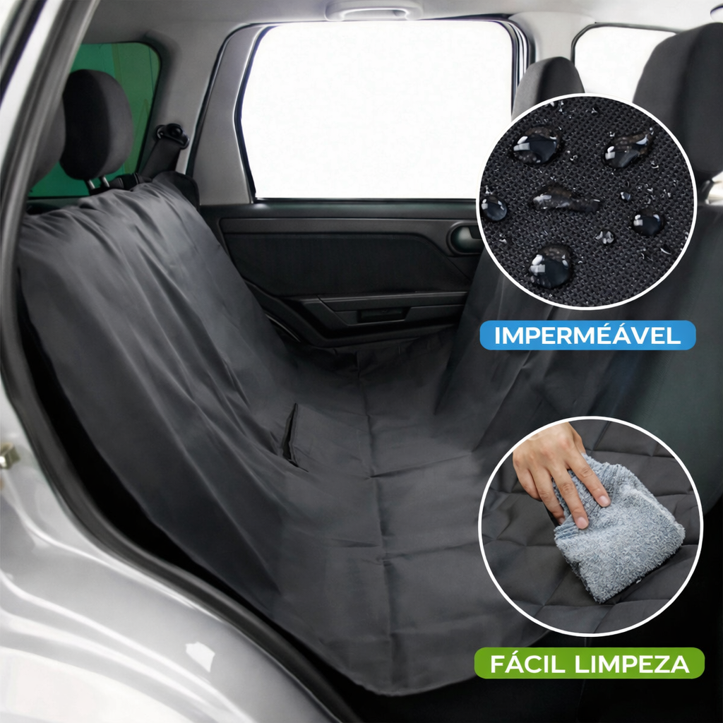 Seu material resistente e impermeável contribui para uma limpeza mais fácil, e o sistema de fixação com alças facilita a instalação no carro. É uma solução útil para quem quer unir proteção, conforto e praticidade em um único produto.