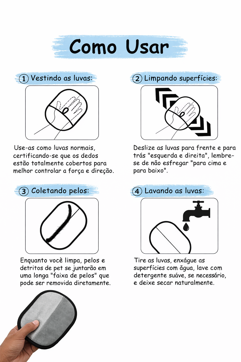 Com design anatômico e encaixe prático, a luva oferece firmeza durante o uso e facilita os movimentos na hora de remover os pelos.