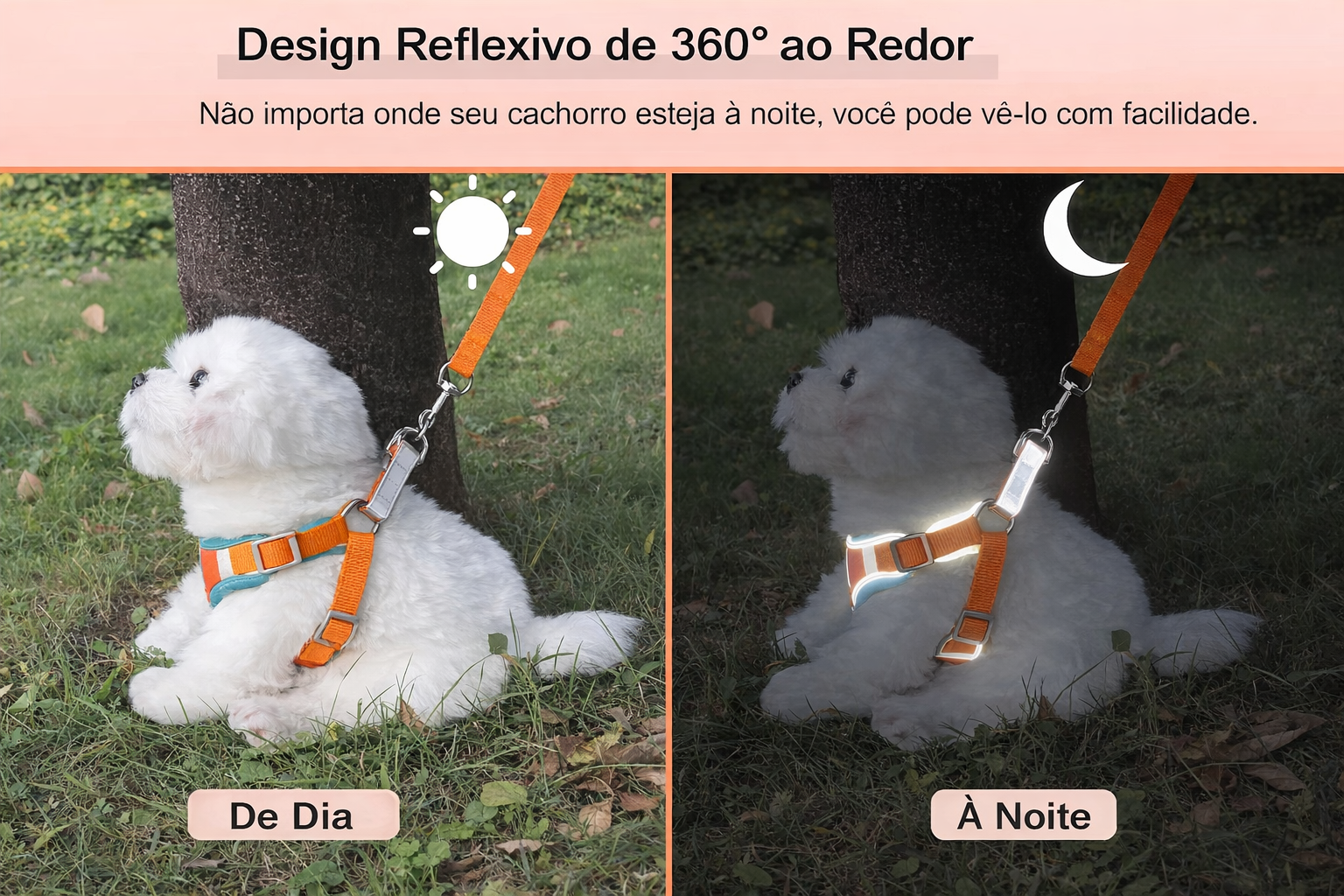 Mesmo com luz fraca, as tiras reflexivas ajudam a tornar o passeio do seu pet muito mais seguro ✨🐶