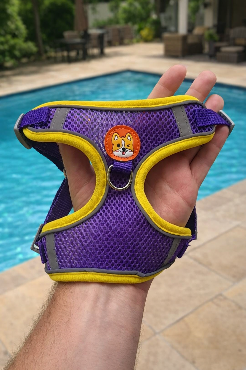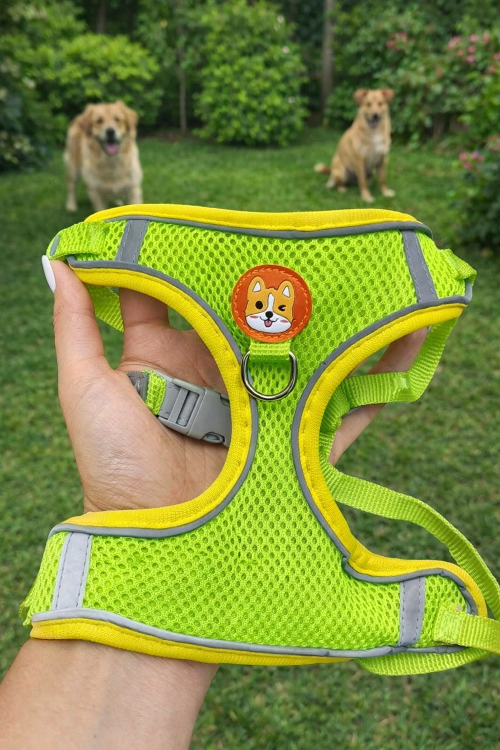 Além de lindo e funcional, ele possui faixas reflexivas, que ajudam a aumentar a visibilidade em passeios noturnos ou em ambientes com pouca luz 🌙✨